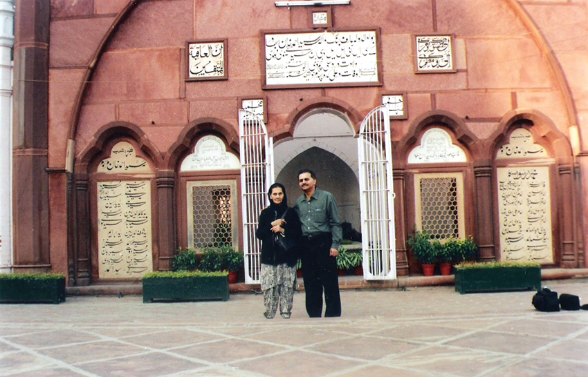 The writer and his mother visit Sir Syed’s grave at AMU.
