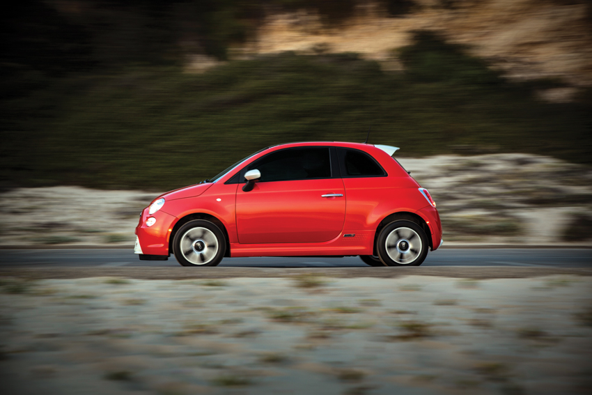The 500e version looks almost exactly like the gasoline model, but differences are in its unique front and rear body panels, wider side sills, rear spoiler and 500e-specific 15-inch alloy wheels.