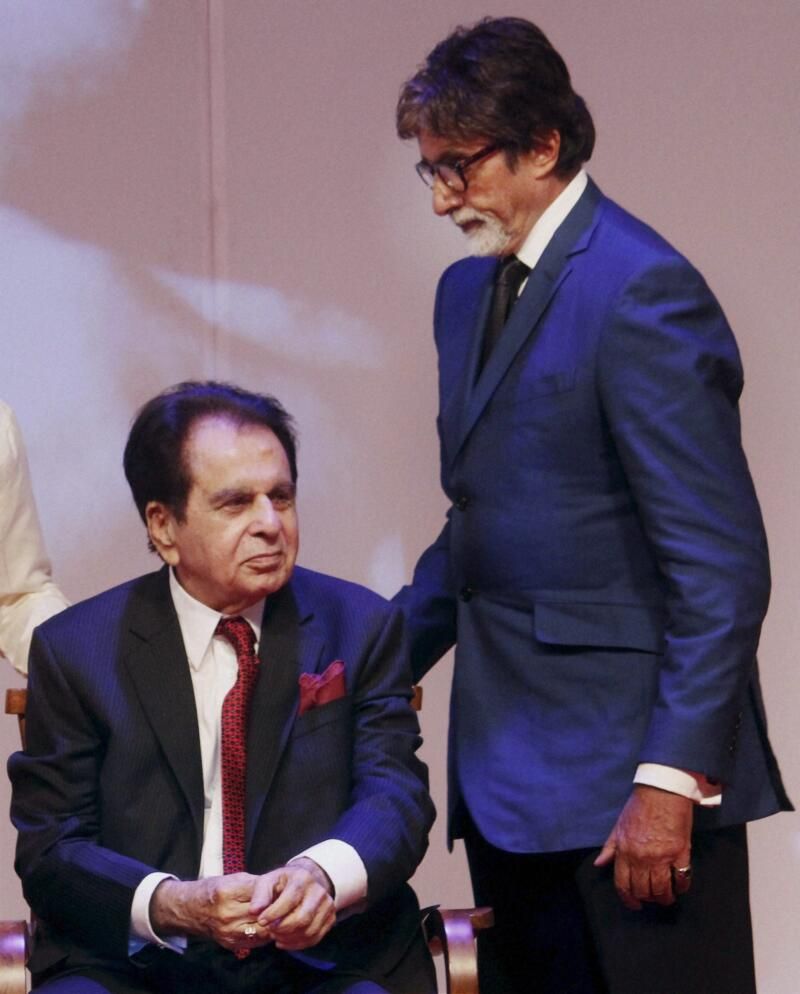 Bollywood actors Amitabh Bachchan and Dilip Kumar during the launch the latter’s autobiography “The Substance and The Shadow” in Mumbai. (Photo: PTI)