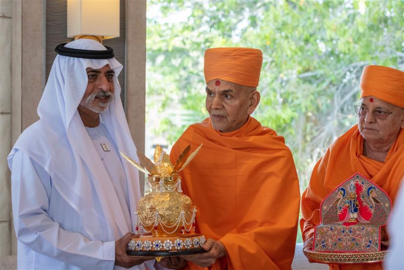 Mahant Swami Maharaj meeting Sheikh Al Nahyan. (All photos: BAPS)