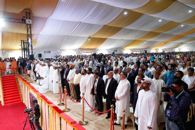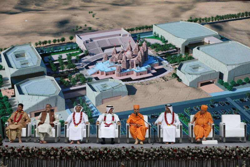 According to a release, thousands gathered to witness the auspicious ceremony marking a significant moment in the history of the UAE, around 5,000 devotees and well-wishers thronged to participate in and witness the foundation stone-laying ceremony of the BAPS Hindu Mandir.