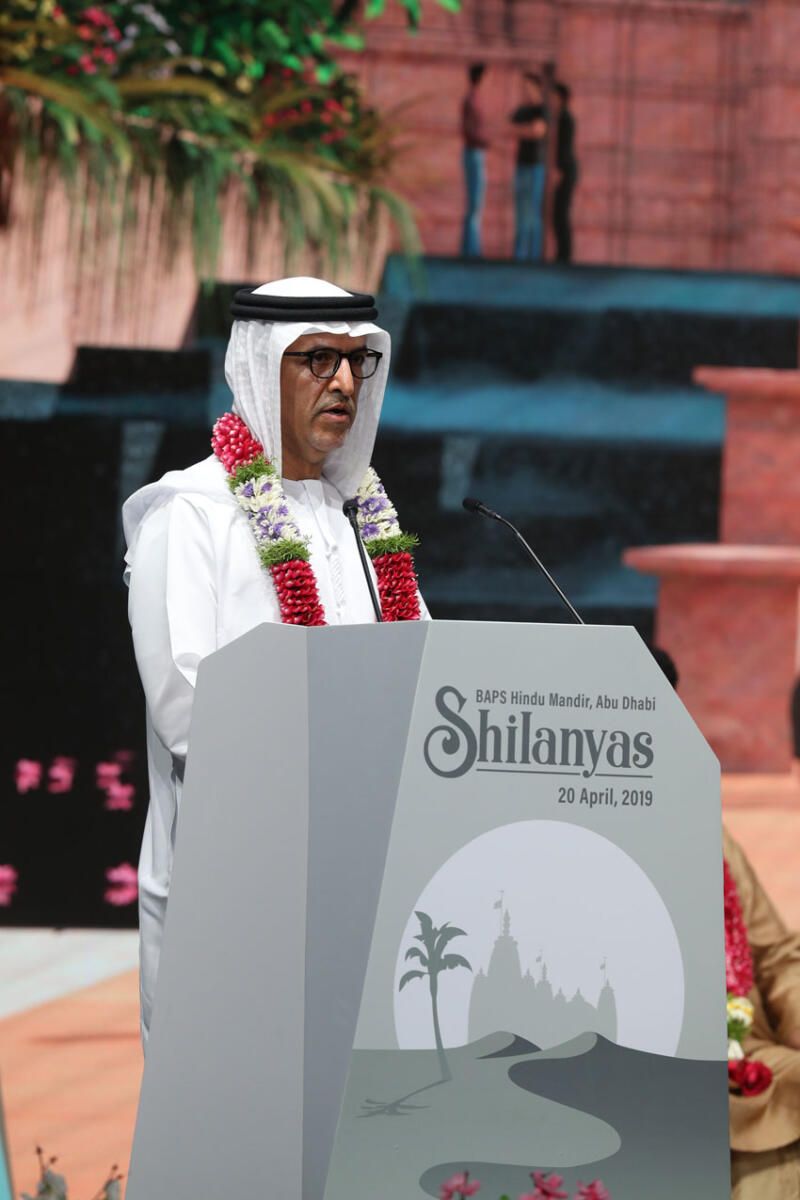 Dr. Mugheer Khamis Al Khaili addressed the gathering: “It is my honor to stand here with you today to celebrate this day by laying the foundation of the Hindu Mandir. This constitutes a great relation between the two countries, nations and cultures. Our presence here today shows the really strong relationship between the two nations. This Mandir reflects the greatness of tolerance.”