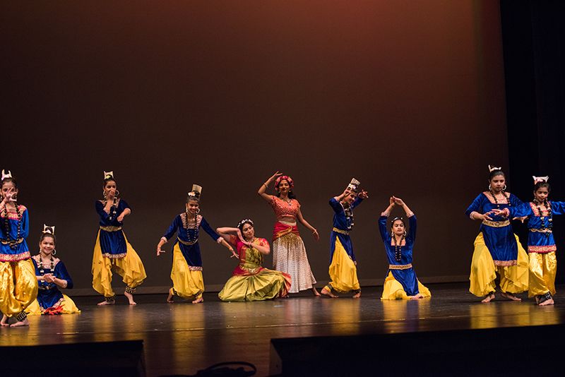 A Bharatnatyam performance is incomplete without the four-fold Abhinayas: Angika, Vachika, Aharya, and Sattvika. At a high level, these translate to Angika (body movements), Vachika (speech and/or music), Aharya (costume and makeup), and Sattvika (mindfulness). “Adhbhuta: Wonderment through Dance” masterfully incorporated these elements to create a mesmerizing production.
