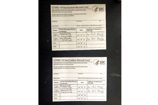 In July, the investigator said in court papers, he received a package containing a CDC COVID-19 vaccination card marked with the name and date of birth he provided and a cellphone screenshot showing that the information he provided had also been added to the state database.