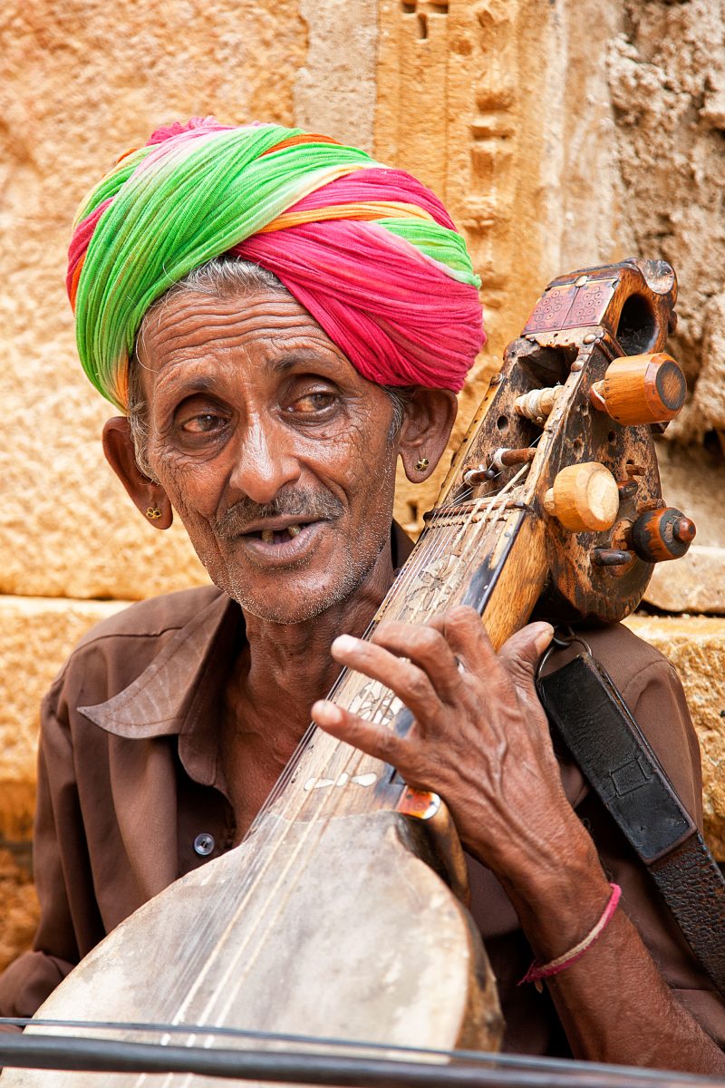 Jaisalmer, India- August 12, 2011: Unidentified indian musician playing sitar, a plucked stringed instrument widely used in Indian classical music, on the streets of Jaisalmer. (iStock photo)