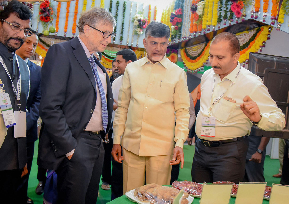File photo of Andhra Pradesh Chief Minister N. Chandrababu Naidu seen here with Microsoft founder Bill Gates at the AP AgTech Summit in Andhra Pradesh, Nov. 17, 2017. (Press Trust of India)