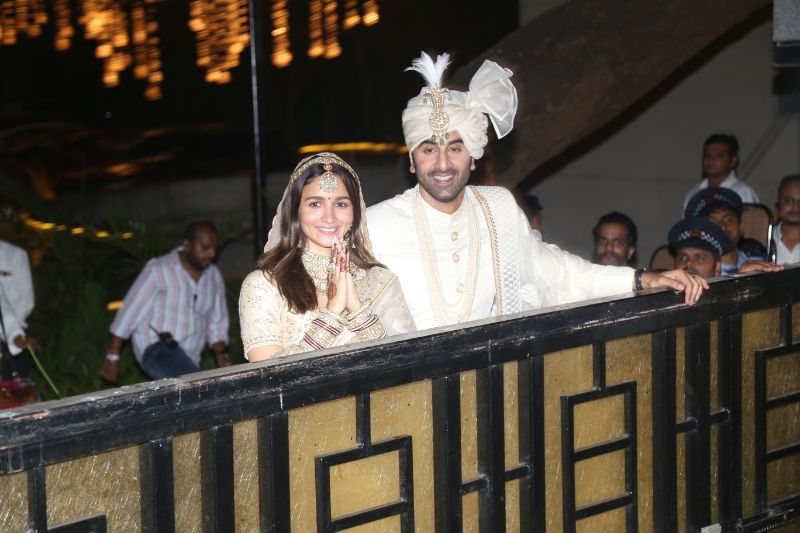Ranbir Kapoor and Alia Bhatt gestures for photographs after tying the knot. (All Photos: APH Images)