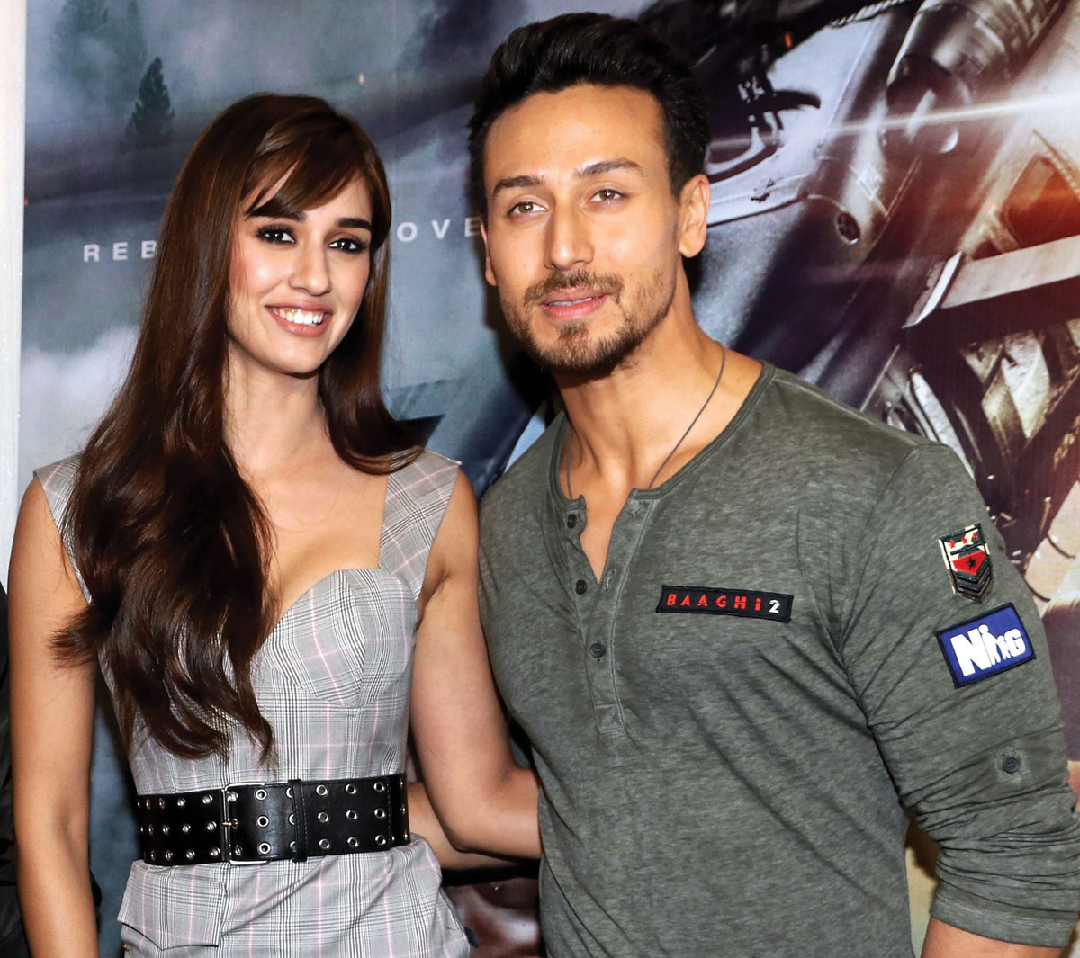 Disha Patani and Tiger Shroff at the launch of action unit for Sajid Nadiadwala’s “Baaghi 2” in Mumbai, March 23. (Press Trust of India)
