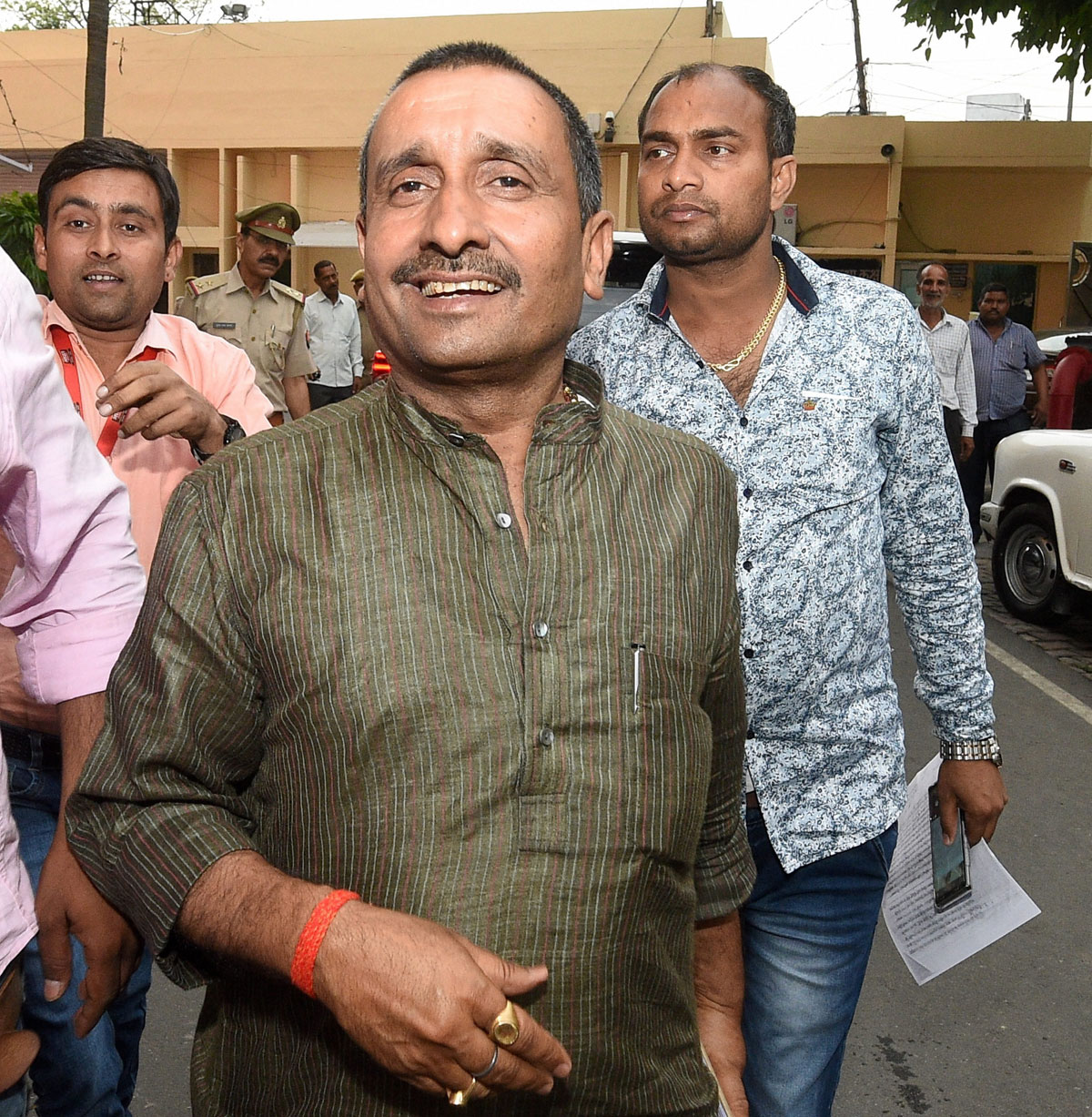 File photo of BJP MLA Kuldeep Singh Sengar who was arrested by the CBI in Unnao rape case, in Lucknow, April 13. (Nand Kumar/PTI)