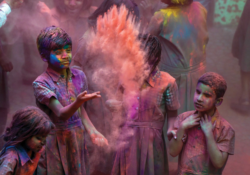 Students from the Kamla Mehta Blind School celebrate Holi in Mumbai, March 1. (Shashank Parade/PTI)