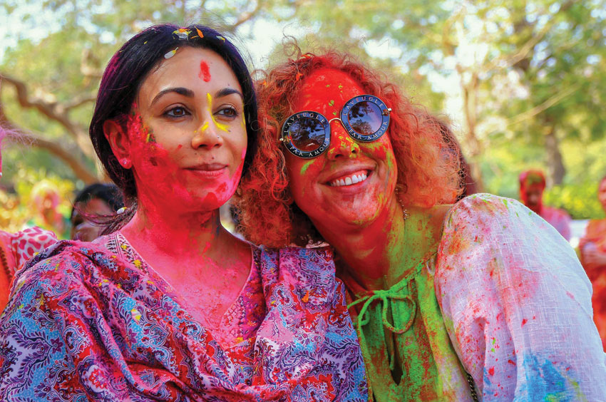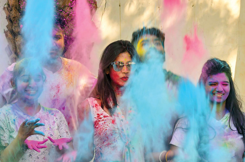 People smeared in ‘gulal’ during Holi celebration in Ahmedabad, Gujarat, March 1. (Santosh Hirlekar/PTI)
