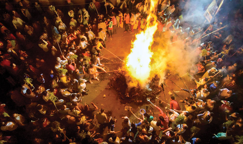 People participate in ‘Holika Dahan,’ on the eve of Holi festival in Patna, March 1. (Press Trust of India)