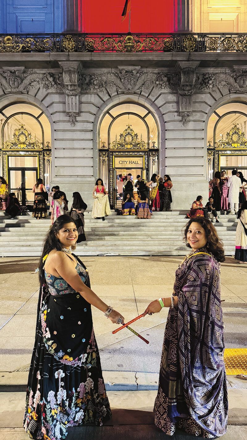 Bay Area residents Swati Jain and Rakhi Poddar pose, ready to celebrate their first ever Garba at San Francisco City Hall, Oct. 3.