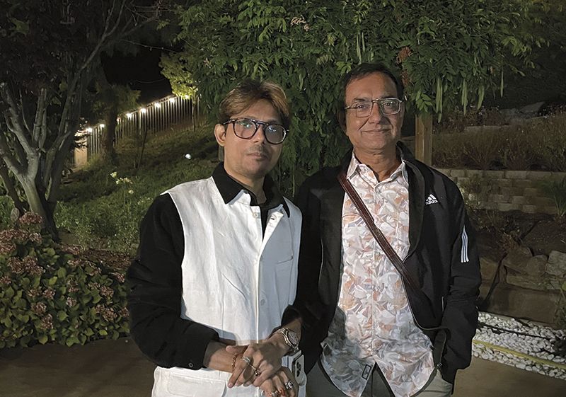 Versatile singer Sagnik Sen seen here with a fellow musician, after their performance of a melodious evening of songs from the legendary Hemant Kumar. Sen was visiting the Bay Area from Kolkata, India. The event held at the residence of Sudha and attorney Mahesh Bajoria, in Fremont, Calif., delighted guests to a soulful rendition of the legend, in a voice which was as close as one can imagine. Dr. Abhay Kumar Pati, a published author on Ayurveda, facilitated the event.