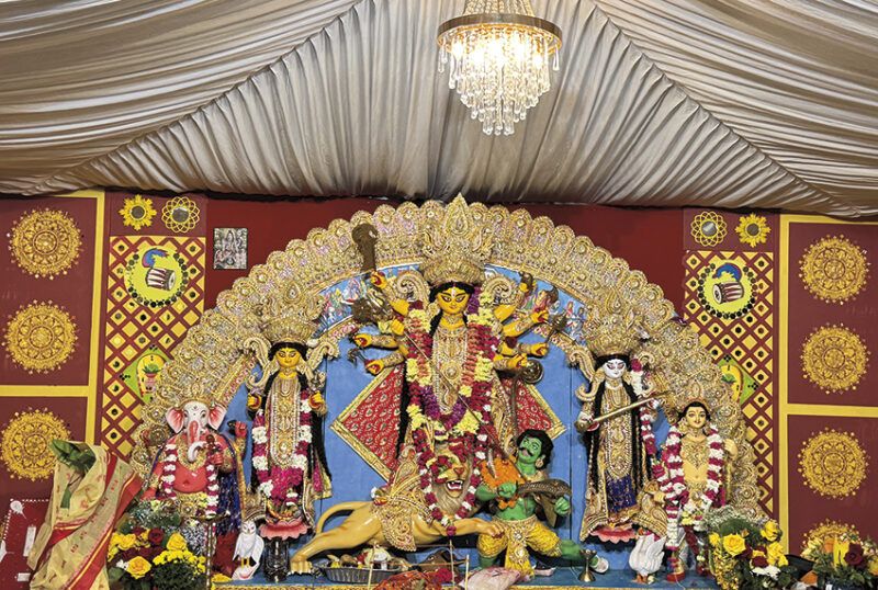 Display of Maa Durga and other deities at the Fremont Hindu Temple Durga Puja celebrations.
