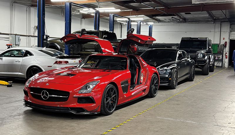 Silicon Valley Garage hosted a car show for the grand opening of their new location in Santa Clara, Calif. Popular brands including Lamborghini, Ferrari, Porsche, McLaren, Mercedes-Benz can be seen waiting their turn for service. The standout vehicles include the nostalgic Mercedes SLS and the new Pagani Utopia.