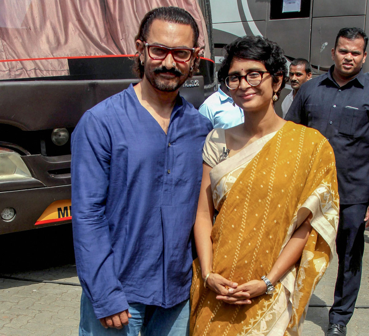 Aamir Khan with his wife Kiran Rao at Mehboob Studios during the promotion of film ‘Veere Di Wedding,’ in Mumbai, May 24. (Press Trust of India)
