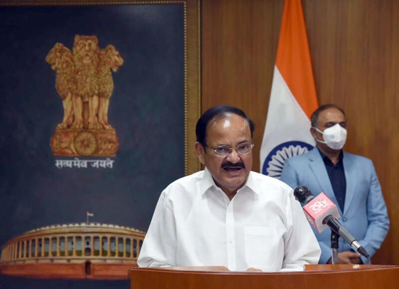 (Above): Indian Vice President M. Venkaiah Naidu virtually delivering the first Pranab Mukherjee Memorial Lecture, in New Delhi on Aug. 31. (PIB)