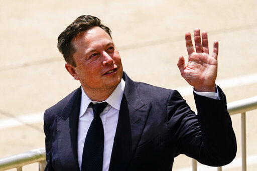 FILE – CEO Elon Musk departs from the justice center in Wilmington, Del., Tuesday, July 13, 2021. Musk says his planned $44 billion purchase of Twitter is “temporarily on hold” pending details on spam and fake accounts on the social media platform. The announcement that the Tesla billionaire tweeted Friday, May 13, 2022 is another twist amid signs of internal turmoil over his planned buyout of Twitter. (AP Photo/Matt Rourke, File)