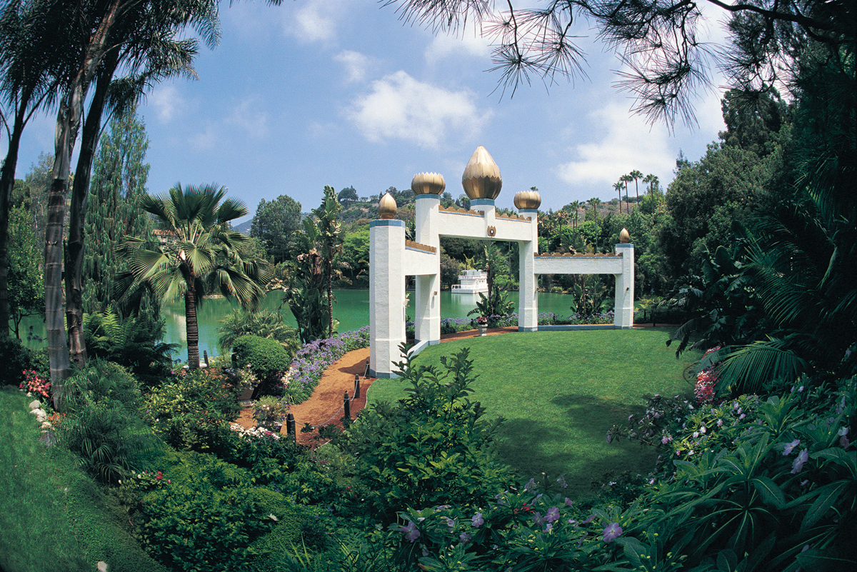 The Self-Realization Fellowship Lake Shrine welcomes tens of thousands of visitors each year who come to experience its tranquility and scenic beauty. (Courtesy of Self-Realization Fellowship, Los Angeles, Calif.)
