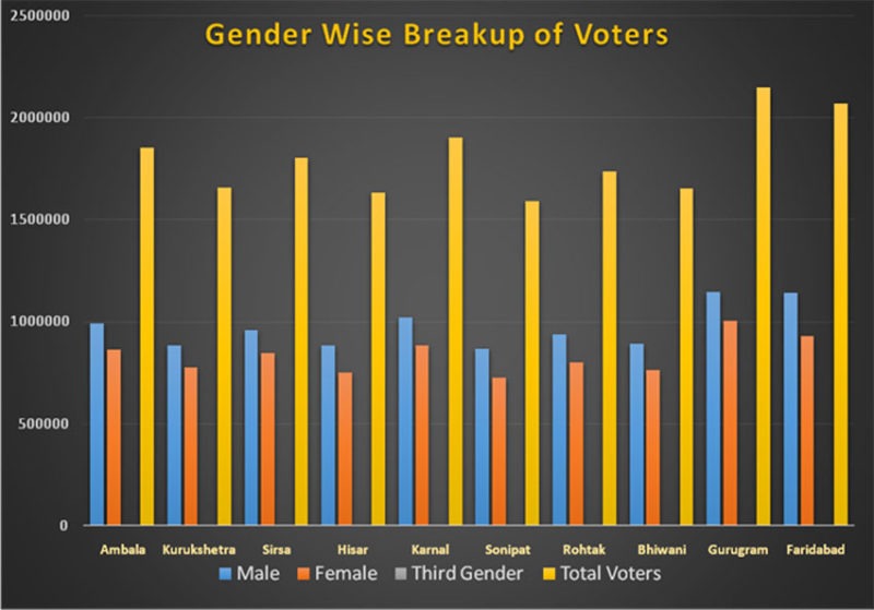 Since the creation of this predominantly agricultural state on Nov. 1, 1966, it was only in 2014 that the saffron party (BJP) helmed the political mantle, catapulting to 47 seats in 2014 (33.2% vote share) from a marginal 4 (9.05% vote share) seats in 2009, mainly due to disenchantment of 35 non-Jat communities who comprise 75% of state-populace with the prior Jat led governments of Chautala (1999-2005) and then Hooda (2005-2014).