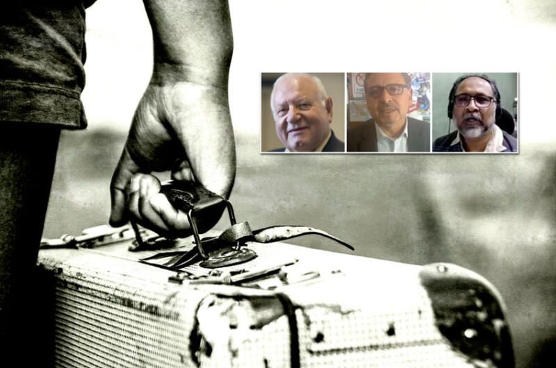 (Above): (Inset, l-r): Demetrios G. Papademetriou, Distinguished Transatlantic Fellow, Migration Policy Institute; Vicente Calderón, Editor, Tijuanapress.com; Krishnaraj Rao, freelance investigative journalist in Mumbai, India. (Siliconeer/EMS/iStock)
