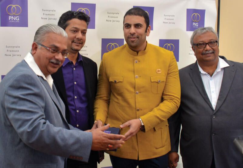 PNG Jewelers MD Saurabh Gadgil (2nd from r), COO Ashutosh Joshi (2nd from l) and CEO Rajendra Soni (r) present an award of appreciation.