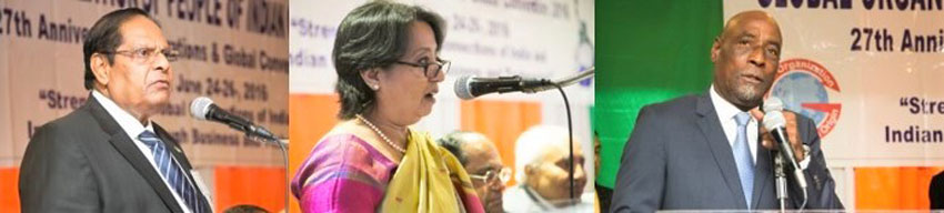 The convention was inaugurated at the World’s Fair Marina, June 24, with remarks by Convention Convener Lal Motwani and by GOPIO President Niraj Baxi at a welcome dinner. Guyana Prime Minister and First Vice President Moses V. Nagamootoo, a freedom fighter for Guyana was the Chief Guest.