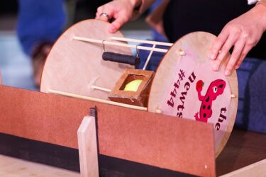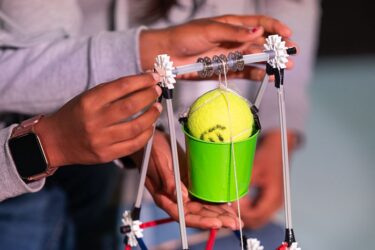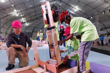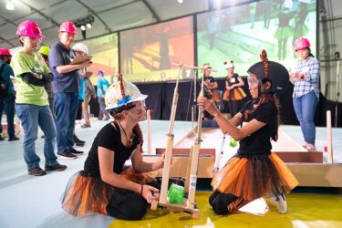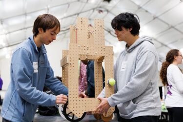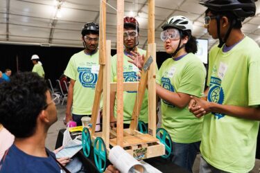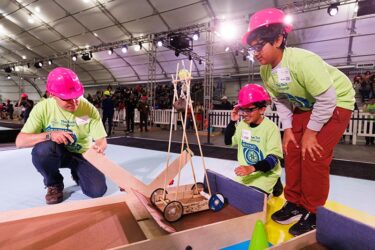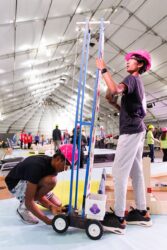 More than 600 teams participated in this year’s challenge, “Gravitate to Navigate,” which tasked them with building a gravity-powered device capable of traversing multiple tracks—forward and back. Each team was required to build a single gravity powered device to complete four successful runs while carrying a tennis ball payload.. Many teams creatively incorporated found materials andelements like wheels, axles, and pulleys.