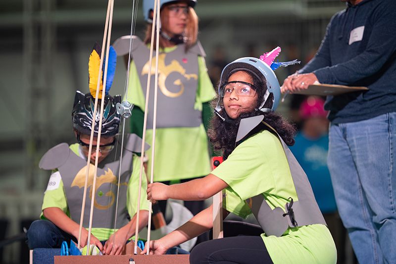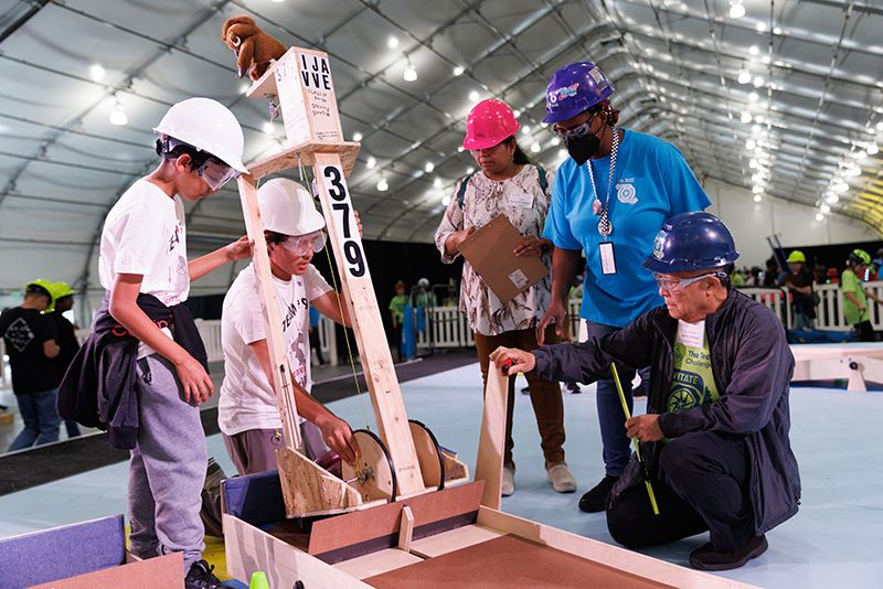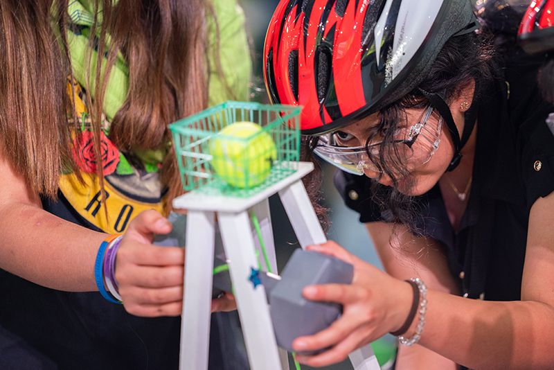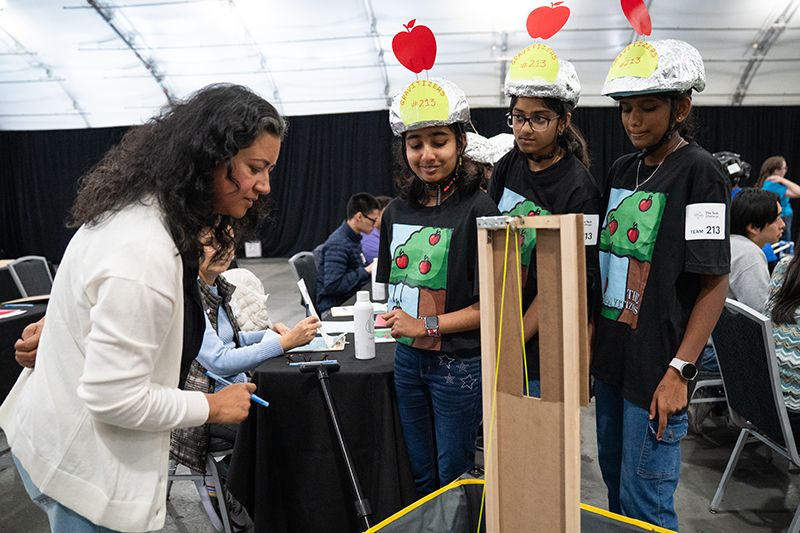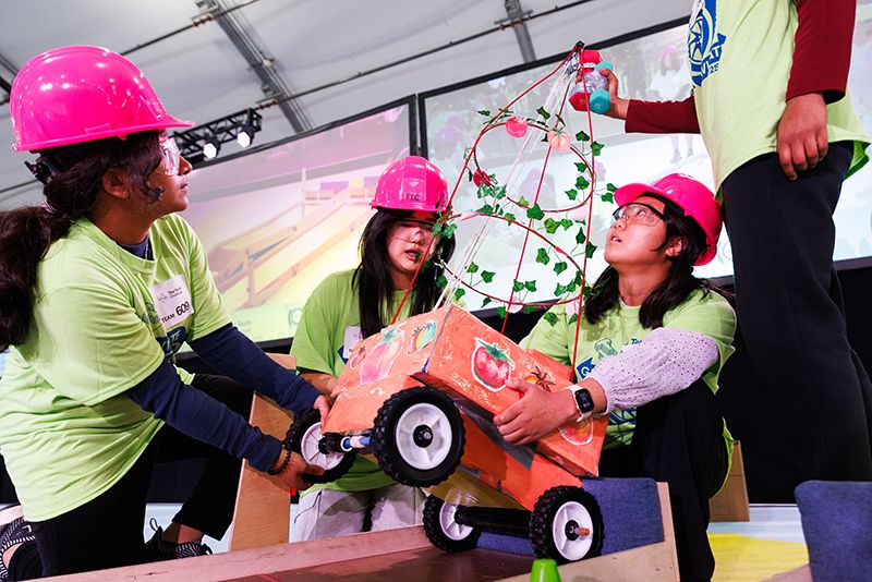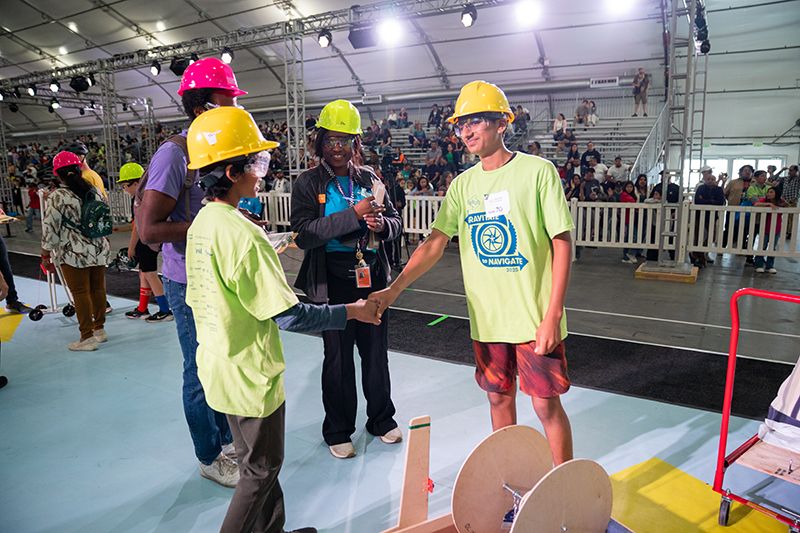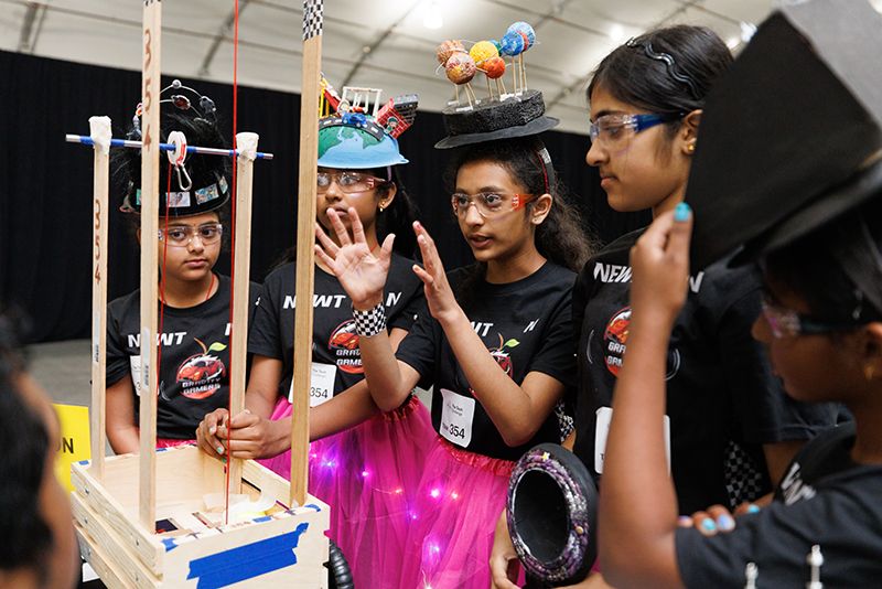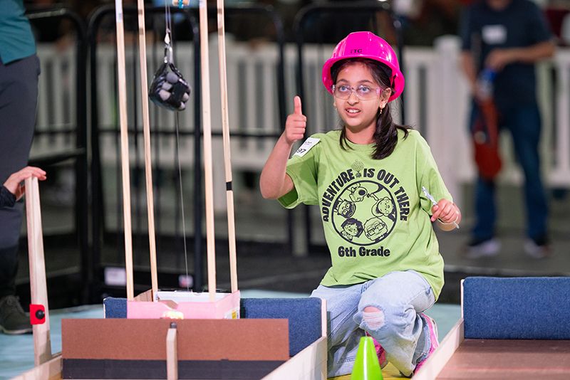 More than 600 teams participated in this year’s challenge, “Gravitate to Navigate,” which tasked them with building a gravity-powered device capable of traversing multiple tracks—forward and back. Each team was required to build a single gravity powered device to complete four successful runs while carrying a tennis ball payload.. Many teams creatively incorporated found materials andelements like wheels, axles, and pulleys.