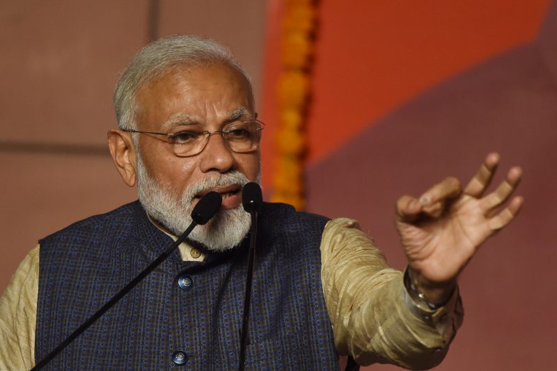 India Prime Minister Narendra Modi gestures during his victory speech at the BJP headquarters in New Delhi (Prakash Singh/AFP)