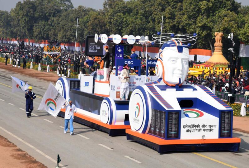 The tableau of Ministry of Communications and Electronics & Information Technology passes through the Rajpath at the 72nd Republic Day Celebrations, in New Delhi on January 26, 2021.