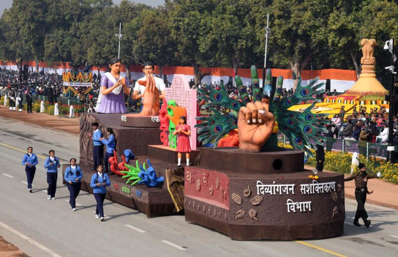 The tableau of Department of Empowerment of Persons with Disabilities, Ministry of Social Justice and Empowerment passes through the Rajpath at the 72nd Republic Day Celebrations, in New Delhi on January 26, 2021.