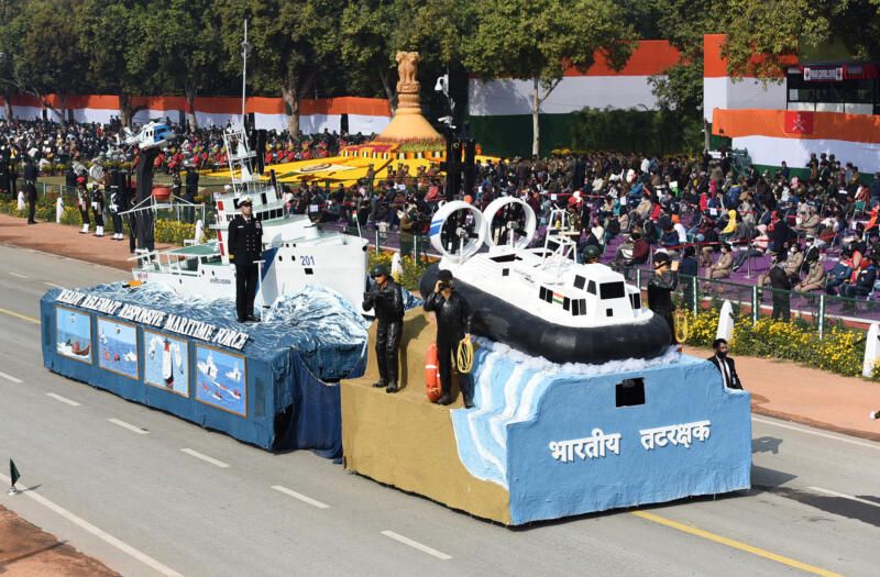 The tableau of Indian Coast Guard passes through the Rajpath at the 72nd Republic Day Celebrations, in New Delhi on January 26, 2021.
