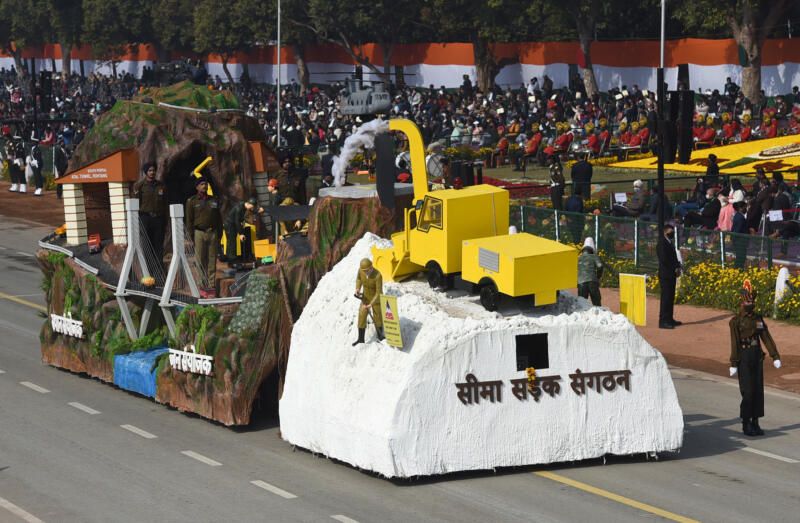The tableau of Border Roads Organisation passes through the Rajpath at the 72nd Republic Day Celebrations, in New Delhi on January 26, 2021.