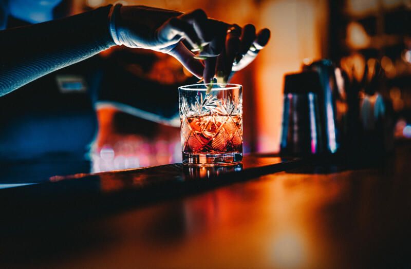 Stardust: Champagne, Sherry, Oleo, Yellow Chartreuse, Sugar Cube, and Edible Gold Dust create a drink that sparkles like the night sky.