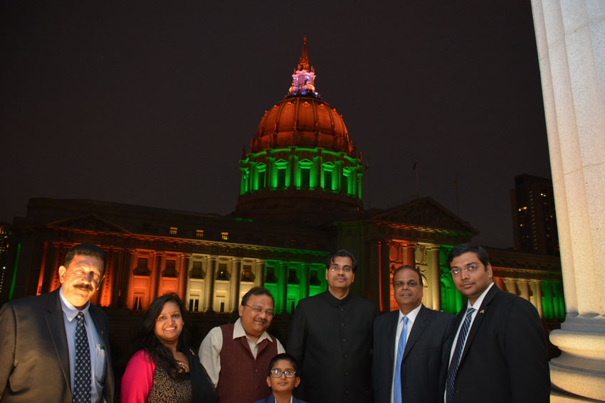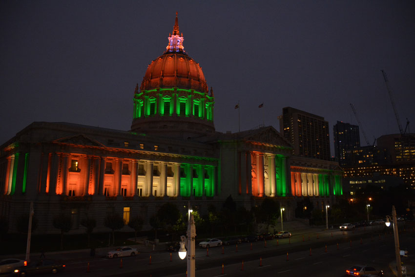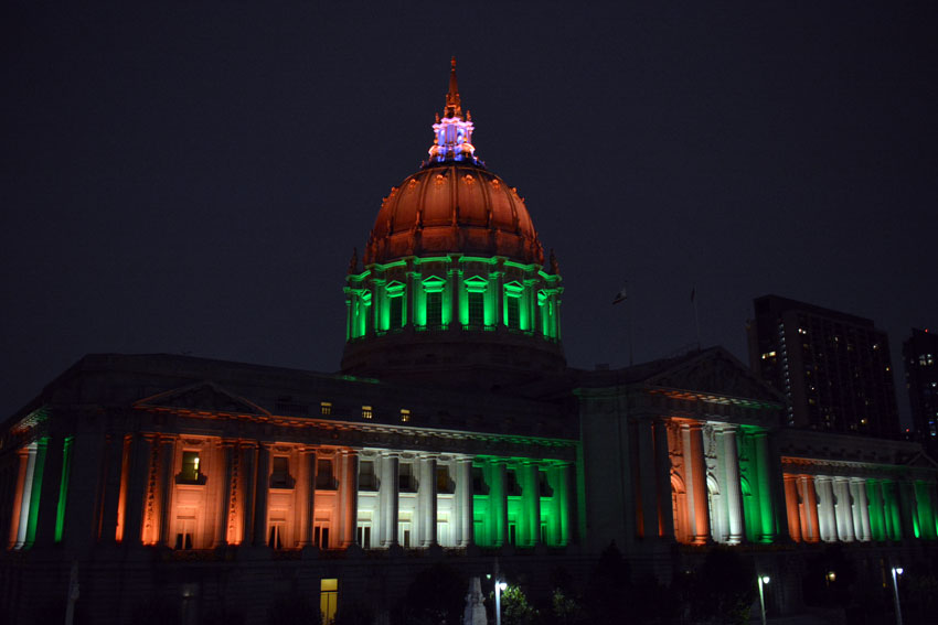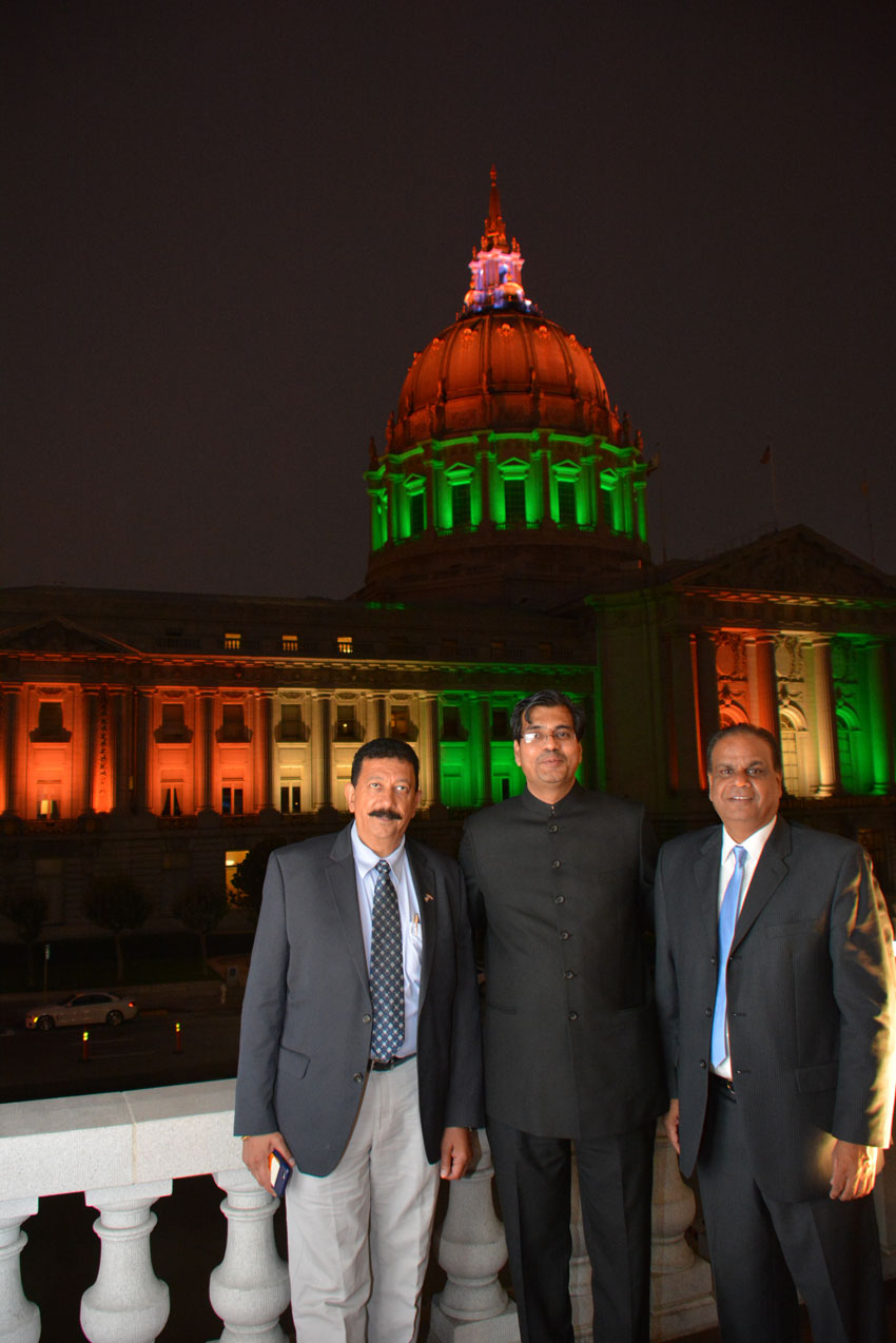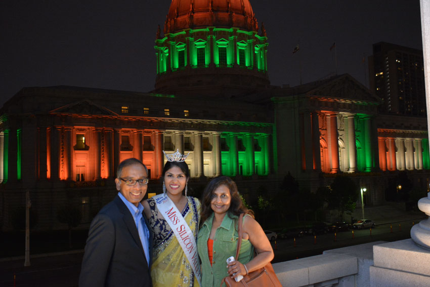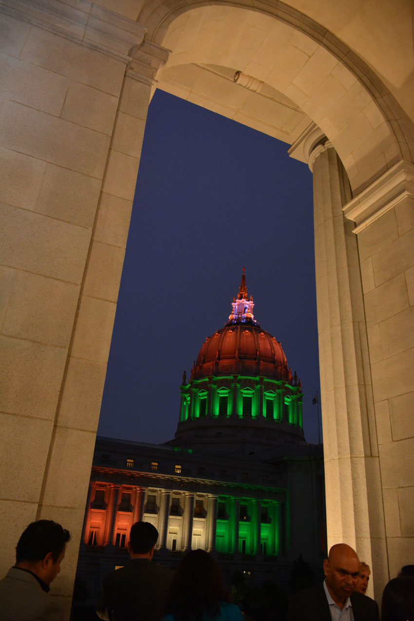 San Francisco City Hall beaming the “tiranga” colors for India’s Independence Day (All Photos: Vansh A. Gupta)