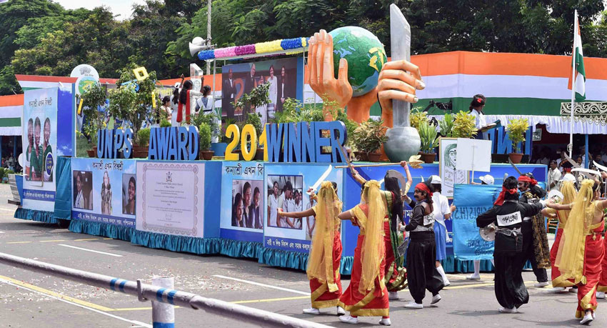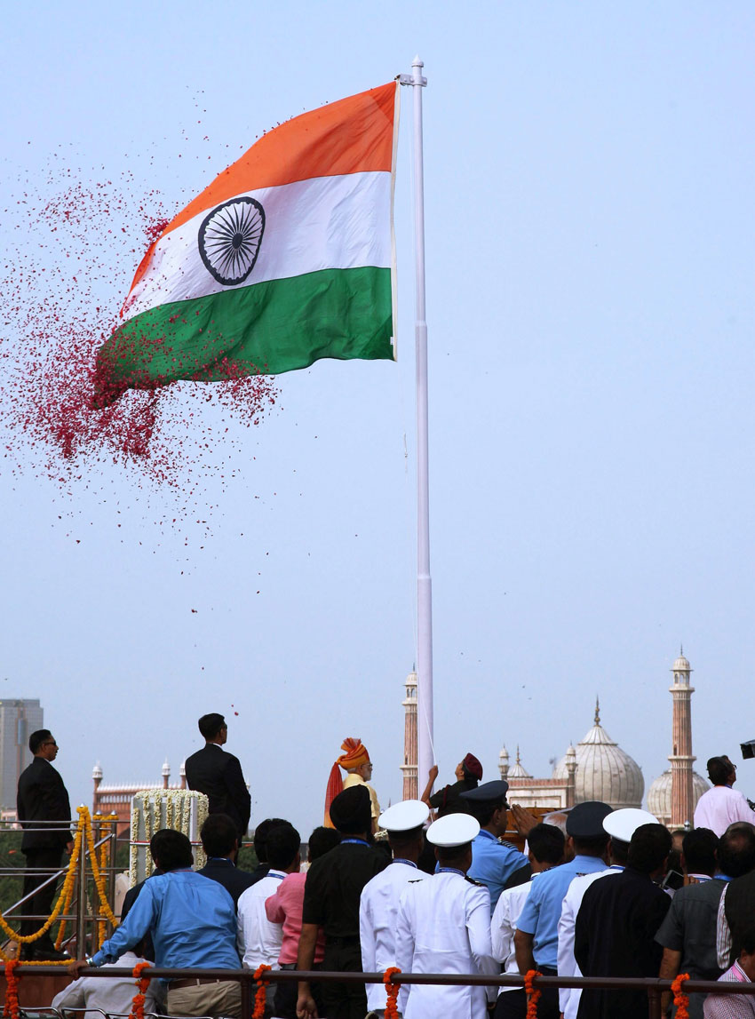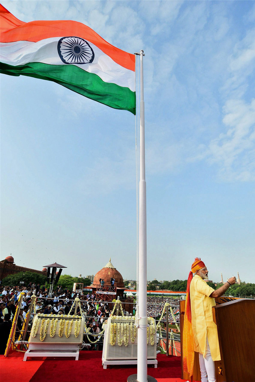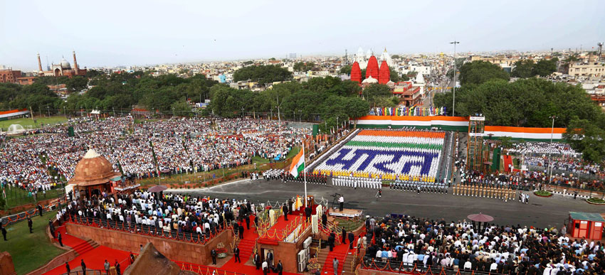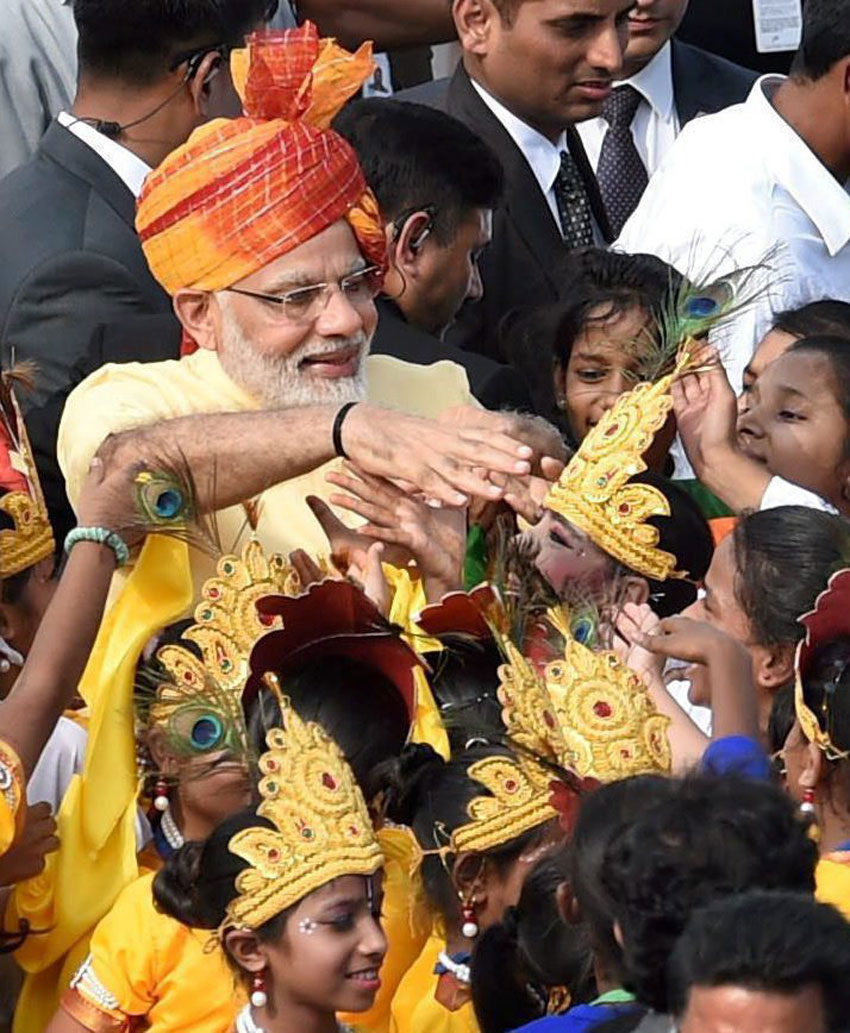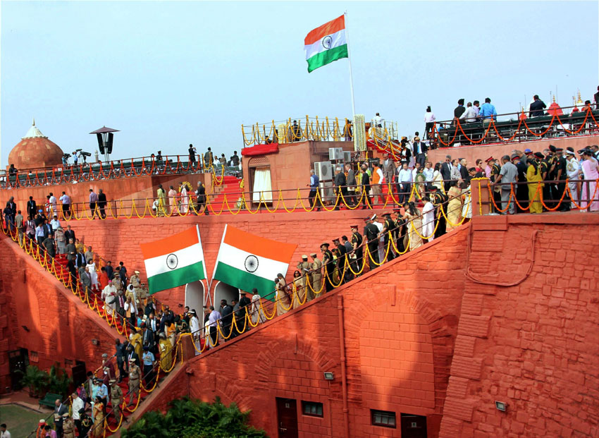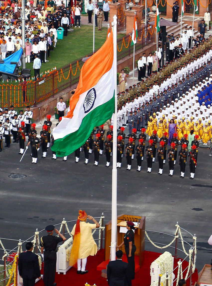 Prime Minister Narendra Modi receiving the guard of honour during the 71st Independence Day at the historic Red Fort in New Delhi on Tuesday. (Subhav Shukla/PTI)