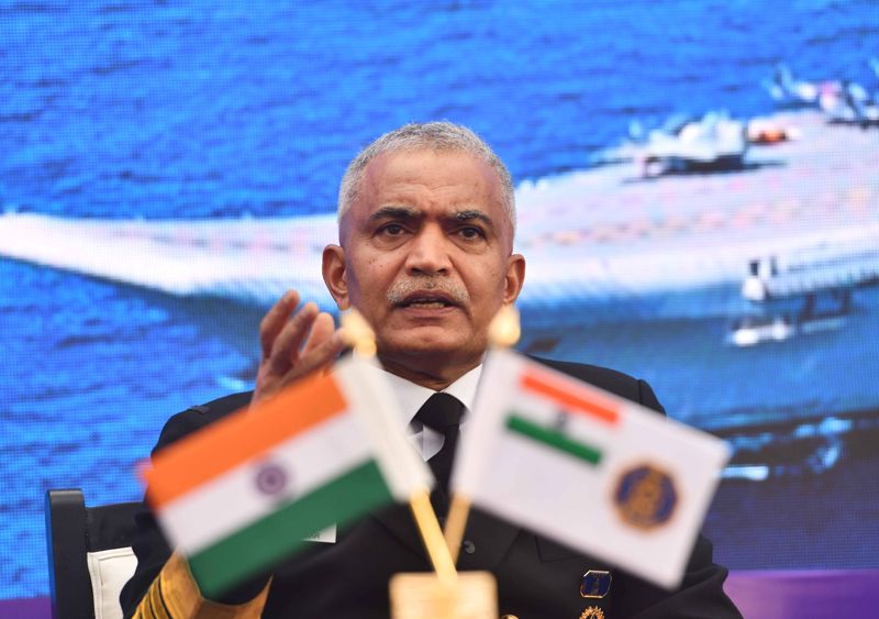 Chief of the Naval Staff, Admiral R Hari Kumar, addresses a press conference ahead of the celebration of Navy Day, in New Delhi. (APH Images)