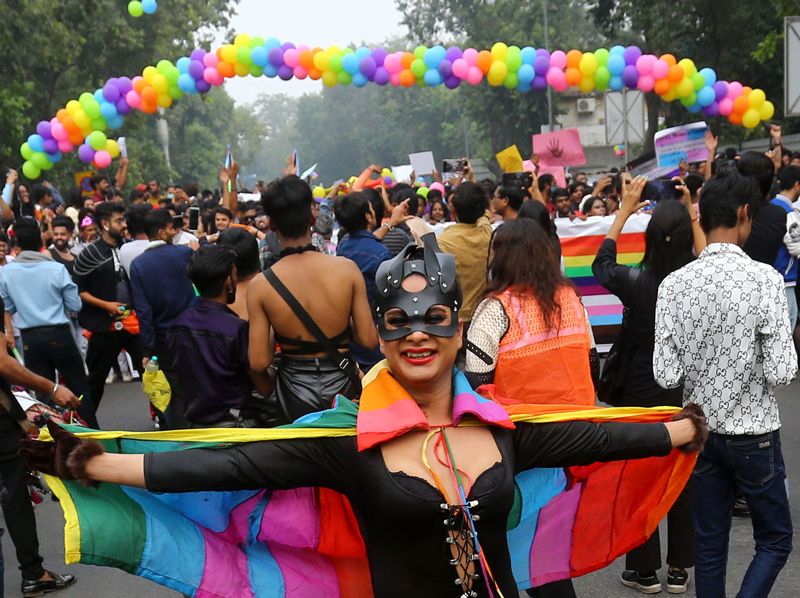 Gender rights activists and supporters of the LGBTQ community express solidarity with Palestinians, as they walk the queer pride parade in New Delhi. (Pallav Paliwal/APH Images)