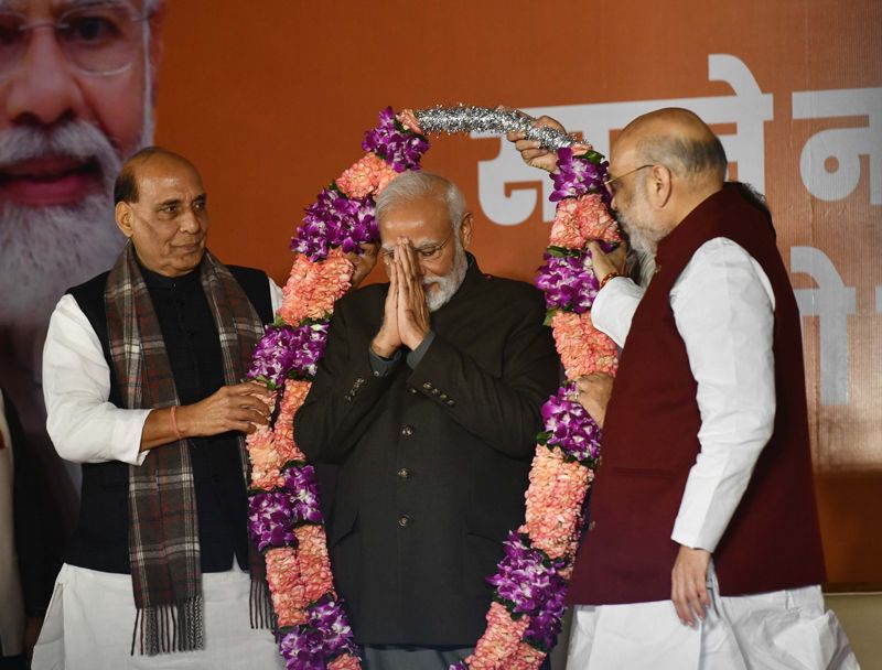 Prime Minister Narendra Modi with BJP Acelebrates at the BJP Headquarters in New Delhi. The BJP claimed victory in elections held in