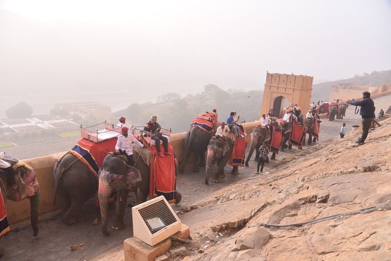Soaking in a bit of India’s culture and history, tourists take elephant rides at the Amer Fort in Jaipur, Rajasthan. (APH Images)