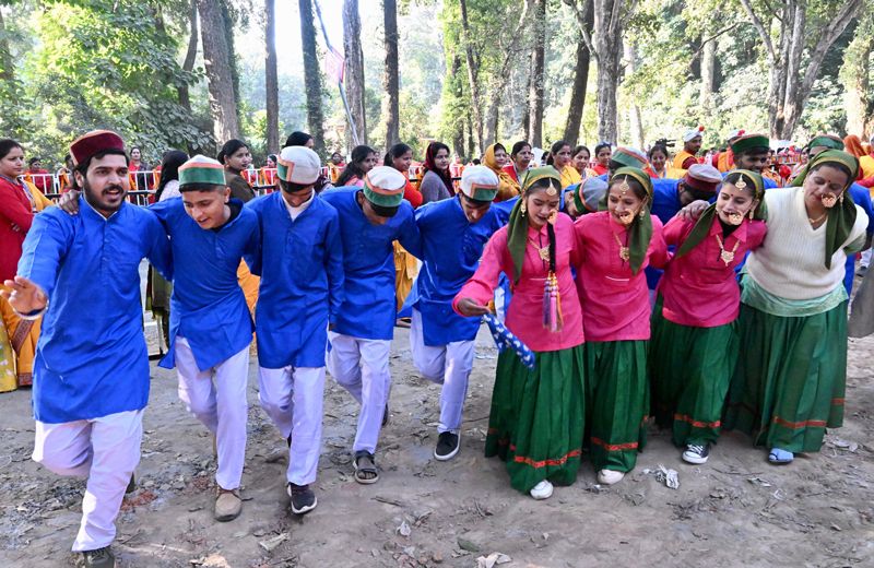 A welcome dance for PM Modi at ‘Uttarakhand Global Investors Summit 2023’ at Forest Research Institute in Dehradun, Uttarakhand, Dec. 8. (PIB)