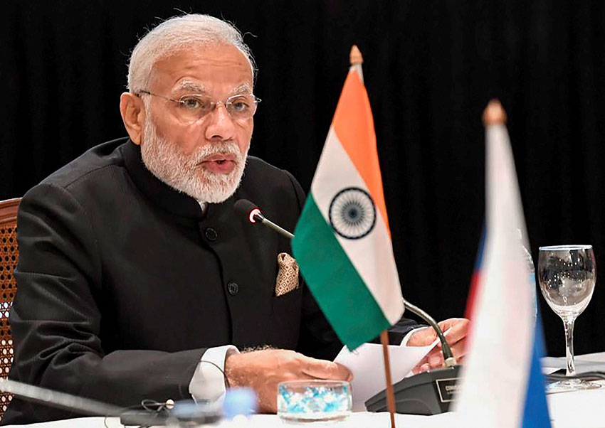 Indian Prime Minister Narendra Modi speaks during BRICS Leaders’ Informal Meeting on the sidelines of G-20 summit, in Buenos Aires, Nov. 30, 2018. (PIB Photo via PTI)