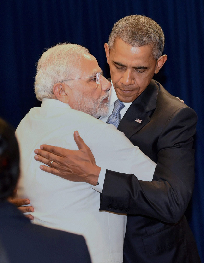 Those present at the meeting said Obama walked to Modi on the other side of the table and gave him a warm hug, informally addressing him as Modi and at times Narendra, his first name.
