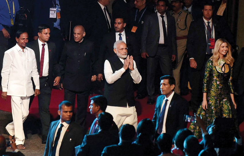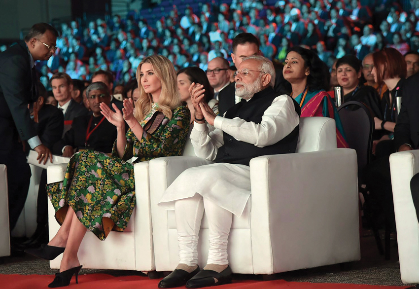 Prime Minister Narendra Modi with Ivanka Trump during the inauguration of the Global Entrepreneurship Summit 2017 in Hyderabad, Nov. 28. (Press Trust of India)