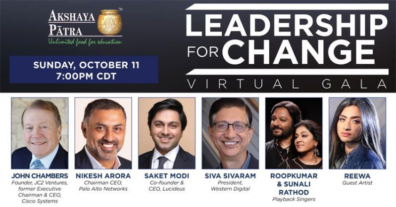The Akshaya Patra Foundation will hold its 6th Virtual Gala of 2020, ‘Leadership for Change’ on Sunday, Oct. 11, at 7:00PM CDT, to raise funds for feeding migrant families and school children in India.