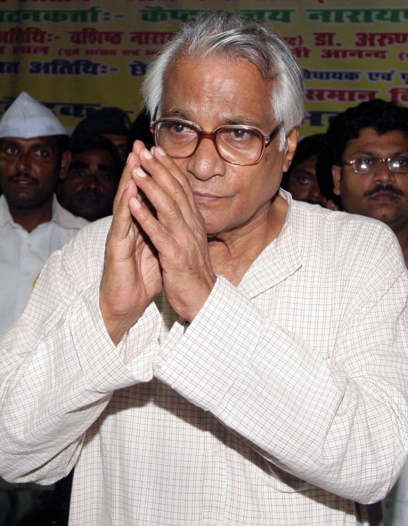 File photo of former Indian Defense Minister George Fernandes greets his supporters at the historical Srikrishna Memorial Hall in Patna, Bihar, Oct. 11, 2006. (AFP/Getty Images)