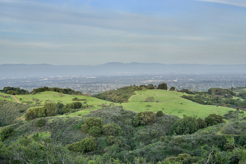 San Francisco Mid Peninsula (Silicon Valley) from up above, in spring.