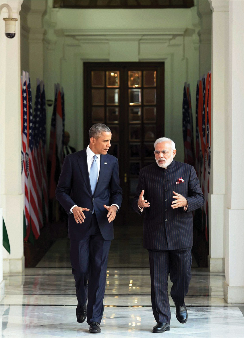 President Barack Obama and Prime Minister Narendra Modi prior to a meeting at Hyderabad House in New Delhi, Jan. 25. (Atul Yadav | PTI)